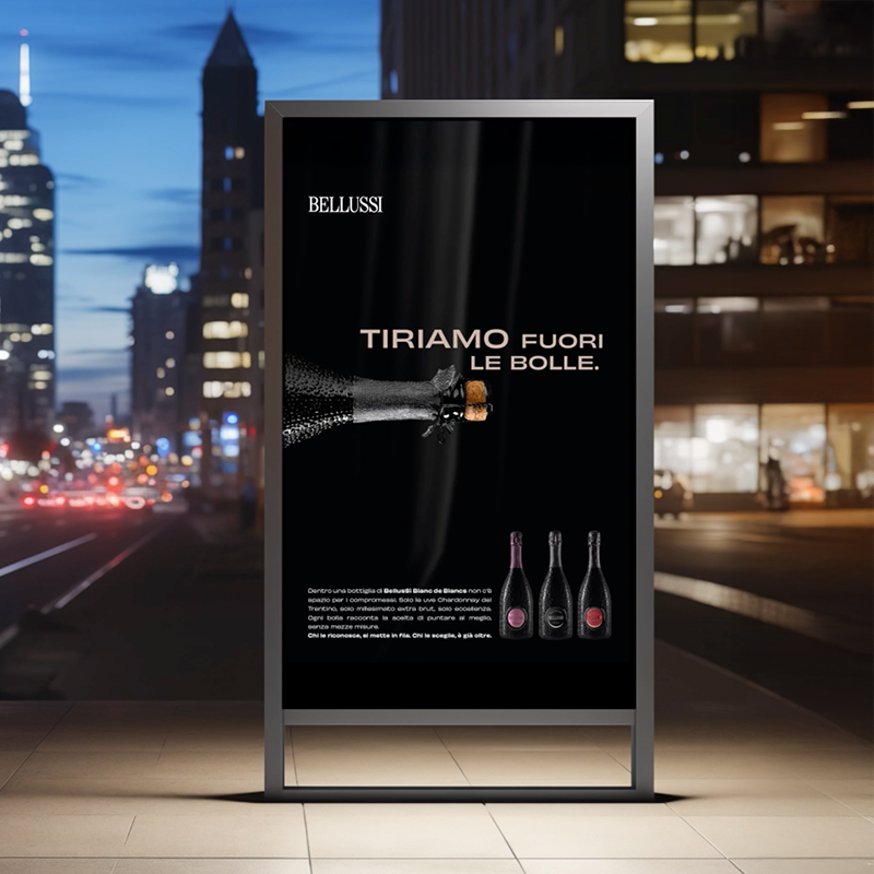 Lanciare la nuova etichetta Blanc de Blancs e rafforzare la presenza del brand Bellussi nel segmento premium, con una comunicazione capace di unire eleganza, modernità e carattere.